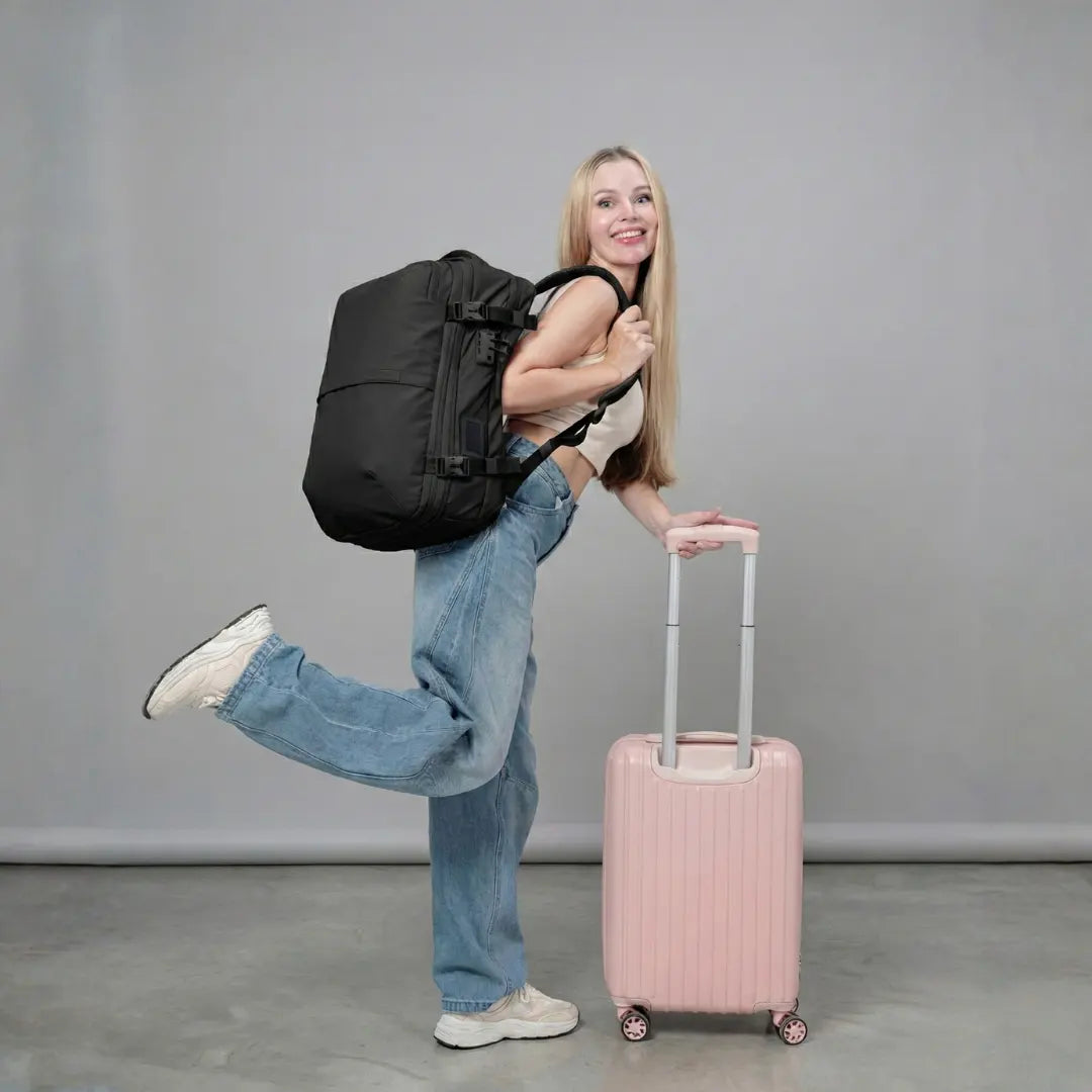 You wont have any issues bringing our backpack on the plane. Our patented vacuum sealing technology in the backpack is fully compliant with TSA regulations and airline guidelines. It functions without any batteries or electrical components, making it safe for air travel. Plus, its compact and efficient design fits easily into overhead compartments or under the seat, ensuring a hassle-free travel experience. However, it is always best to check with the airlines.